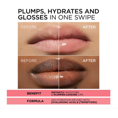 Enriched with hyaluronic acid and tripeptides to provide deep 24-hour hydrationFeatures a lightweight, non-sticky formula that gives a glossy, plumped finishDelivers a cooling sensation for a refreshing lip care experienceHas a unique cushioned applicator that enhances application and lip massage